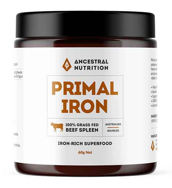 The information presented on this page is provided for general educational purposes only and is not intended to diagnose, treat, cure, or prevent any disease. Statements about Primal Iron — Grass-Fed Beef Spleen and other Ancestral Nutrition products have not been evaluated by the Therapeutic Goods Administration (TGA). These products are sold as foods/dietary supplements and are regulated under the Australia New Zealand Food Standards Code; they are notregistered therapeutic goods.